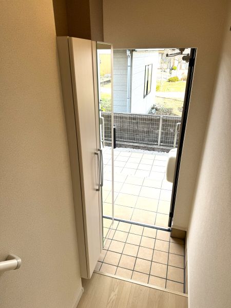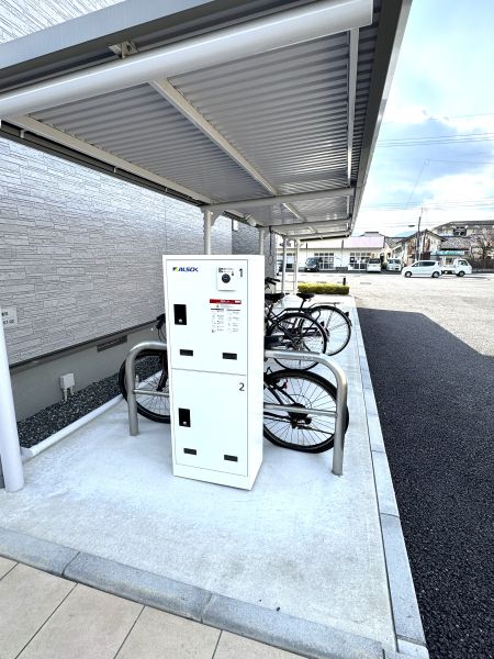 ガスコンロ付、バス ・トイレ別、温水洗浄便座、追い炊き機能、エアコン、全部屋照明付、クッションフロア、屋内洗濯機置場、ウォークインクローゼット、シューズボックス、玄関に手すり、TVモニターフォン、二重窓、宅配ボックス、バルコニー、駐輪場、平面駐車場、敷地内ごみ置場、