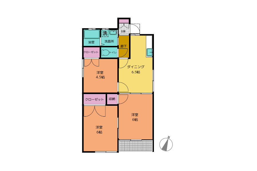 | 間取り | 3DK | 主要採光面 | 南西 |