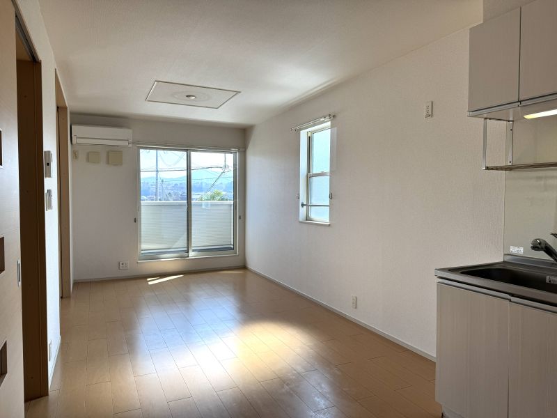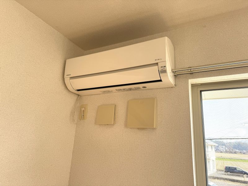 ガスコンロなし、浴室、バス ・トイレ別、温水洗浄便座、浴室乾燥機、エアコン、クッションフロア、屋内洗濯機置場、シューズボックス、TVモニターフォン、宅配ボックス、駐輪場、平面駐車場、