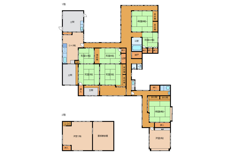 バス・トイレ別、下駄箱、土間、押入れ、屋根裏部屋、勝手口、専用庭、